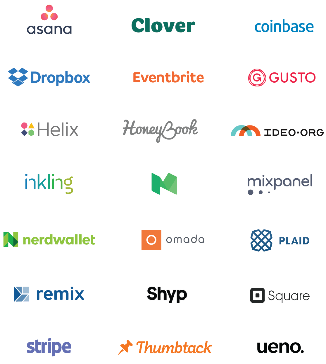 For Bridge 2017, we’re excited to partner with mission-driven companies across a range of industries and stages. We welcome many returning partners, including Asana, Dropbox, Eventbrite, Medium, Gusto, and Omada.
