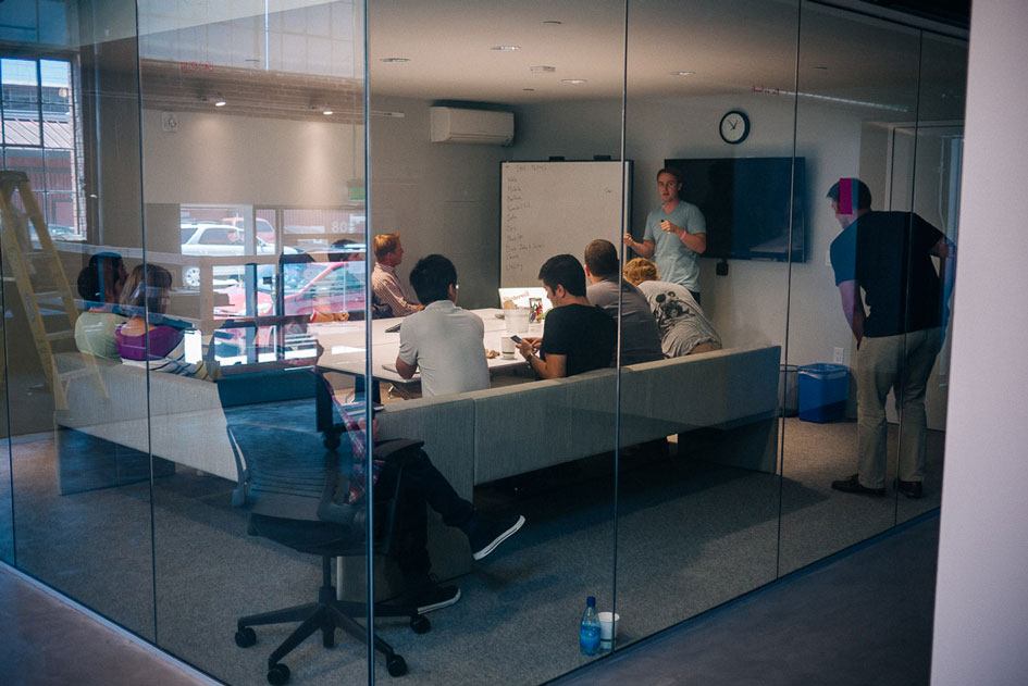 Meetings take place everywhere — from the lounge spaces to glass offices. One of the core company values is “knit”, which loosely translates to “collaboration”, so you’ll often find teams across disciplines working together. Meeting rooms were named by employees and represent popular pins, such as Kale Chips, Hipster Babies and DIY.