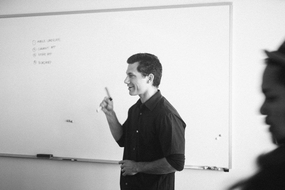 I just had a presentation with Ben and Evan about the future of the mobile stuff. I gave the whole presentation completely analog. I completely did it Mad Man style, on physical boards that I flipped through. The fantastic thing was everyone paid attention. No one was on their phones, and people had to think through the concepts. We had criteria of how we were evaluating these different directions, and I had a huge matrix chart that was hand-drawn, and then I had a mind map thing that’s like the whole information architecture of the app. We countered it with the follow-up at the end of the meeting. We gave them live prototypes of the apps. We went from absolute low fidelity to done.”