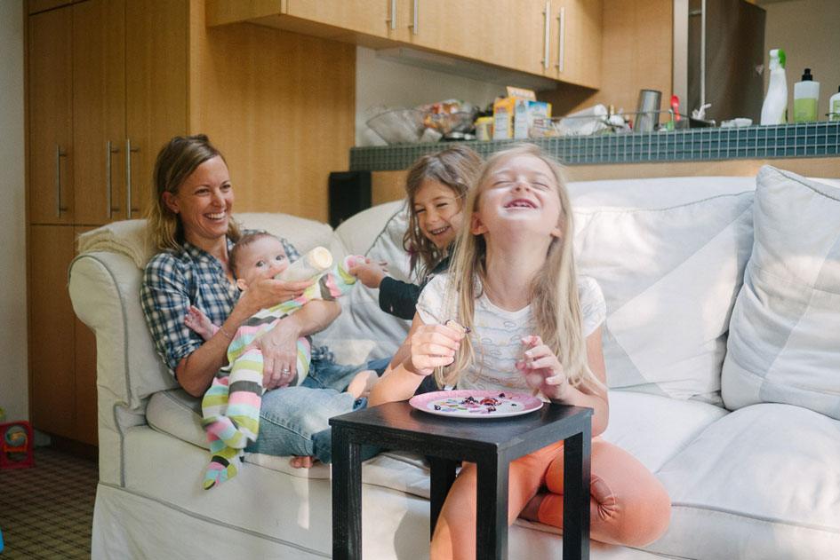He and his wife, Sarah, get the oldest two ready to go.