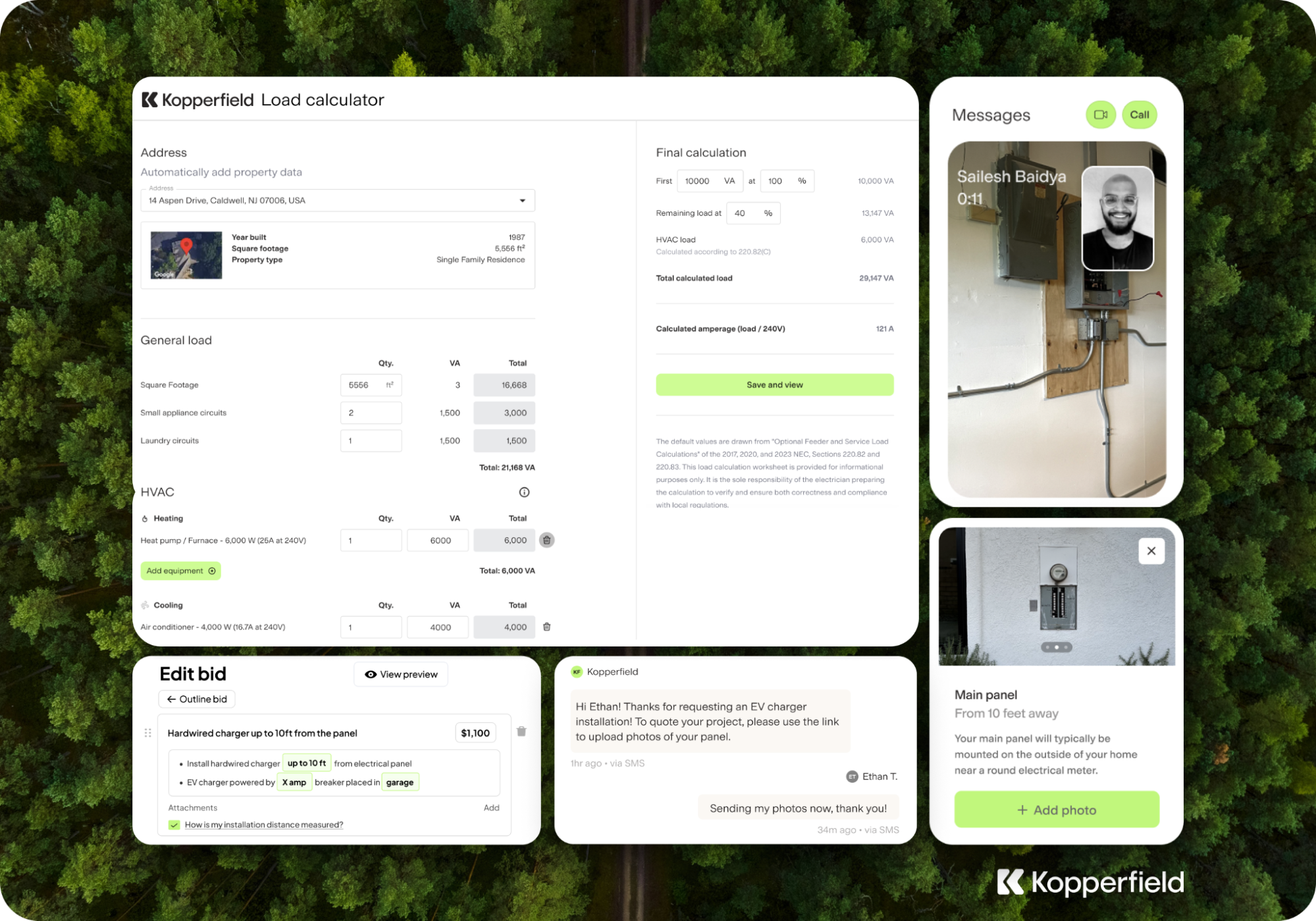To help with this, Kopperfield provides software tools to residential electrical, HVAC, and solar contractors that save time and increase conversion, while accelerating the movement towards home electrification. Residential contractors including electricians, HVAC technicians, and solar installers are on the front lines driving the adoption of cleaner technologies—with better software that supports their work, the whole industry gets moved forward.
