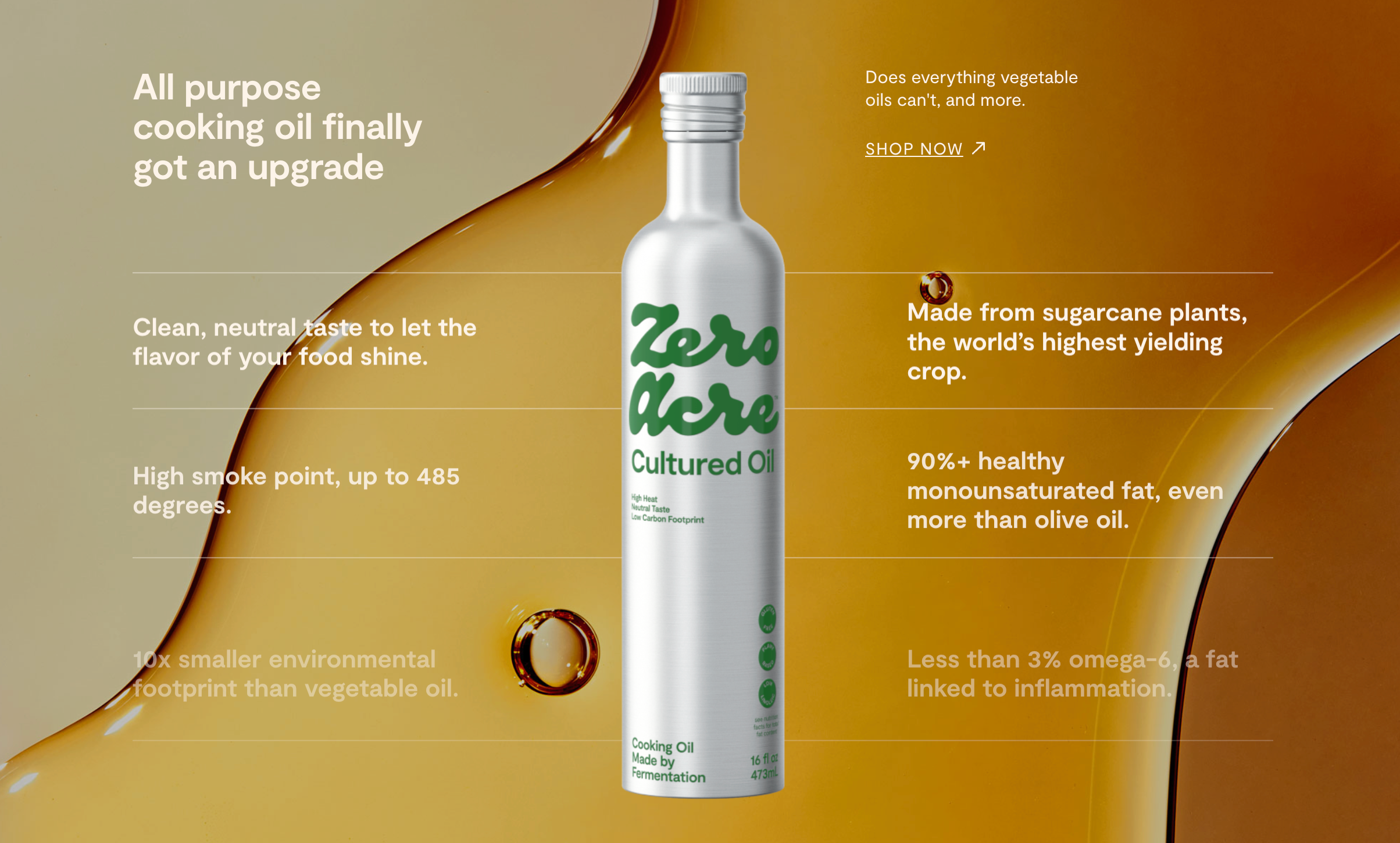 Zero Acre Farms isn’t just looking to create a new, healthier product in a legacy category—it’s seeking to radically shift behavior and build a movement with their cultured oil that has a 10x smaller environmental footprint than vegetable oil.