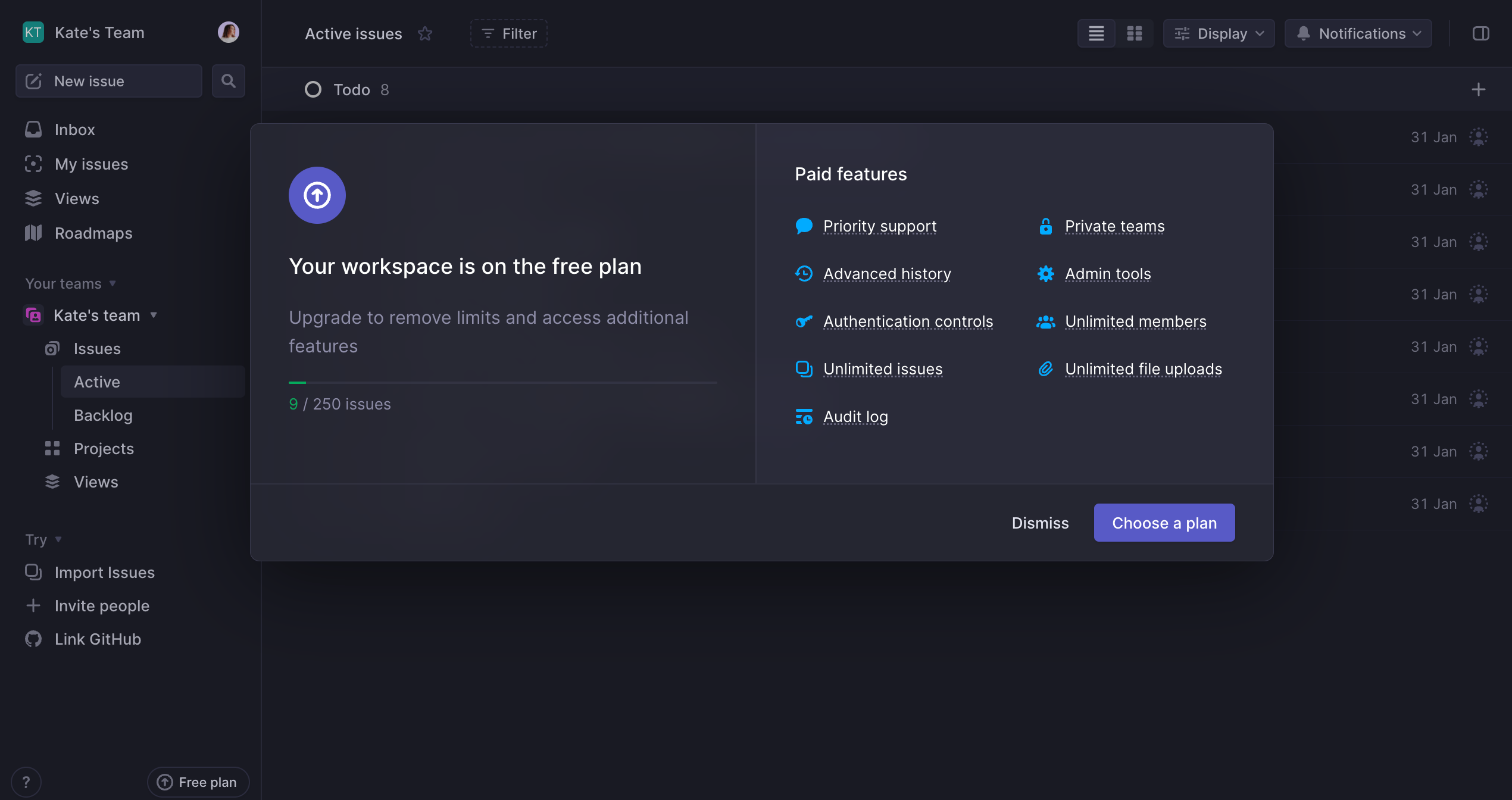 Linear focuses on simplicity and clarity across its product experience. Known for its streamlined, efficient interface, its user invitation process is refreshingly simple, offering just two options for inviting others: by link or email. This clarity extends throughout the product, supporting Linear’s goal of “simple first, then powerful” design. By reducing friction and over-complication, Linear keeps users engaged, enhancing both activation and virality for its collaborative features.