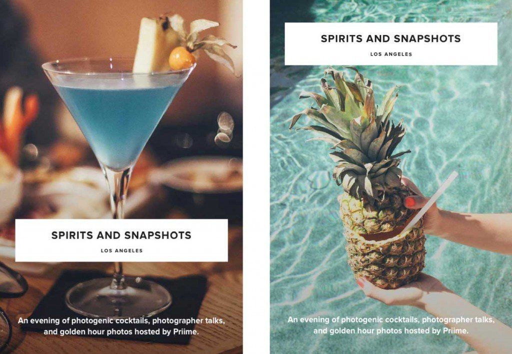 Here are two options for a Los Angeles summertime cocktail event flyer hosted by Priime. They are a good example of the difference between adequate photo selection and great photo selection. The cocktail on the left is a decently done photo, with harmonious colors and a tasty garnish. It’s a passable flyer. However, it doesn’t tell much of a story other than “here’s a fancy drink.”