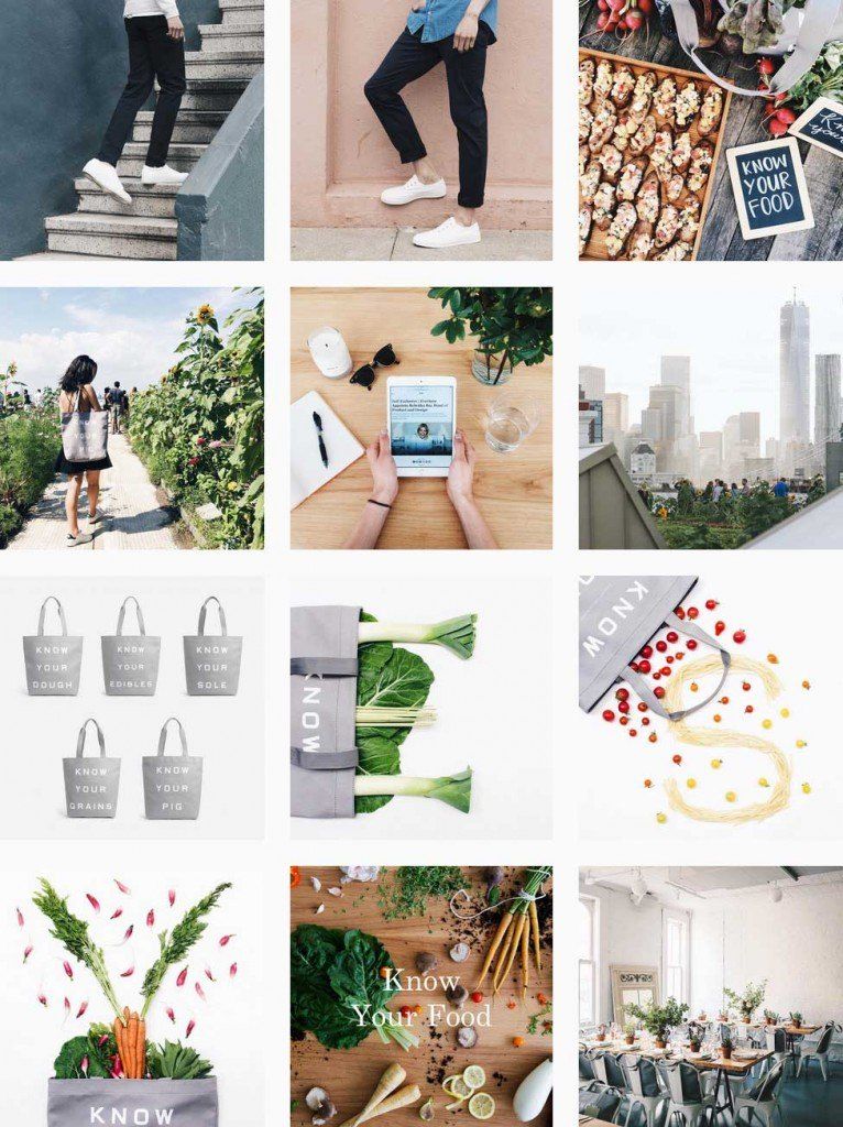 Everlane’s Instagram feed, using consistent colors and developing stories over time