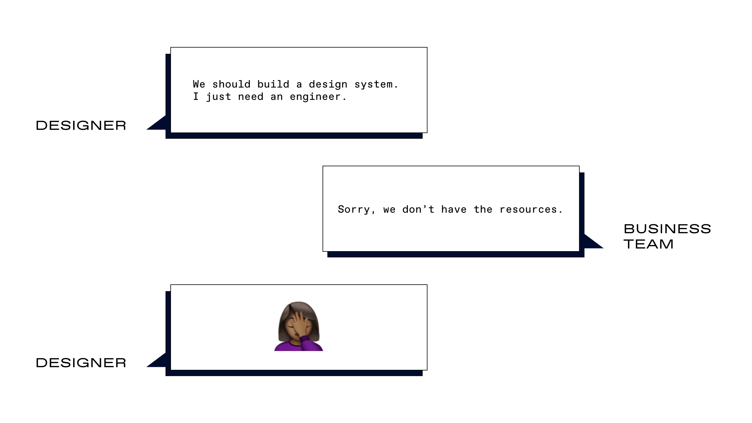 Often as designers, our natural tendency is to emphasize the importance of our craft, instead of focusing on the impact it has on the bottom line. For example, if you approach your manager and propose moving from a static style guide to a component based design system, that sounds expensive. It's not obvious to managers how a design system could save the business money in the long run.